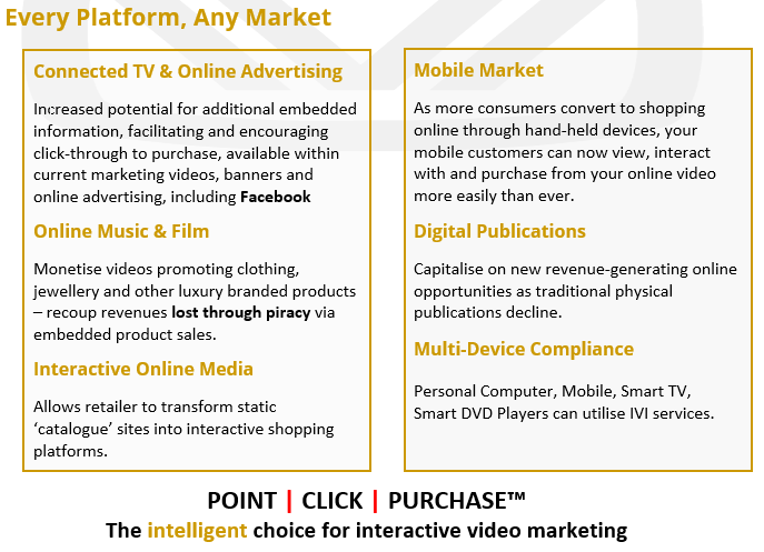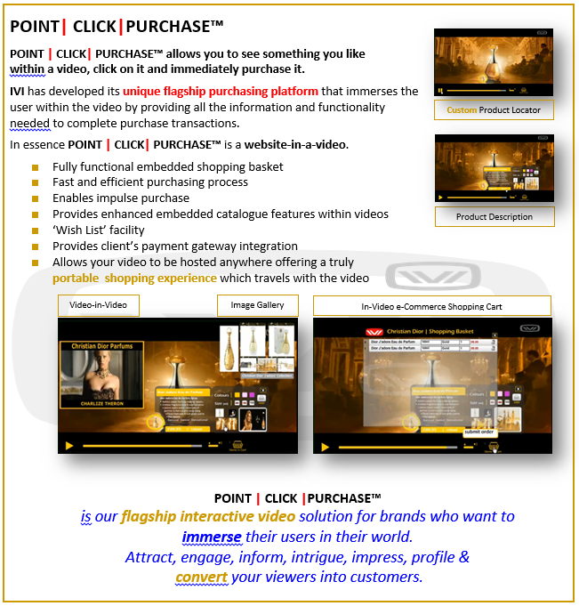 IVI, with its revolutionary Point | Click | Purchase In-Video eCommerce Solutions, offers brands the following: