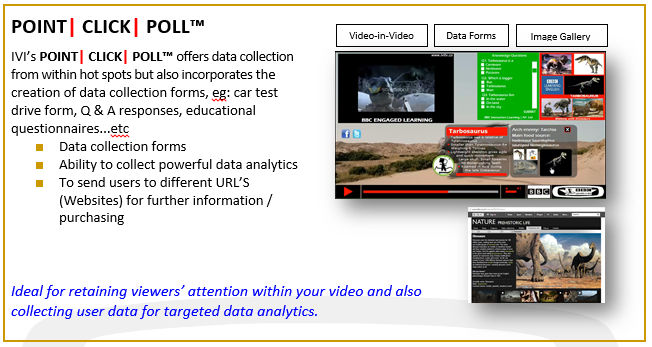 If a brand wants to collect data on its viewers then our Point | Click | Poll solutions will allow them to do this.