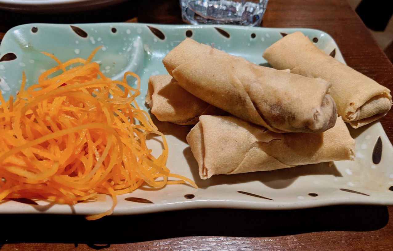 All three of these dishes looked fairly unassuming at first glance, but they tasted fantastic. The duck spring rolls were paler than I was expecting, but were in fact exceedingly crisp. The yaki soba was fresh and flavoursome, with a pleasing zing from the pickled ginger.