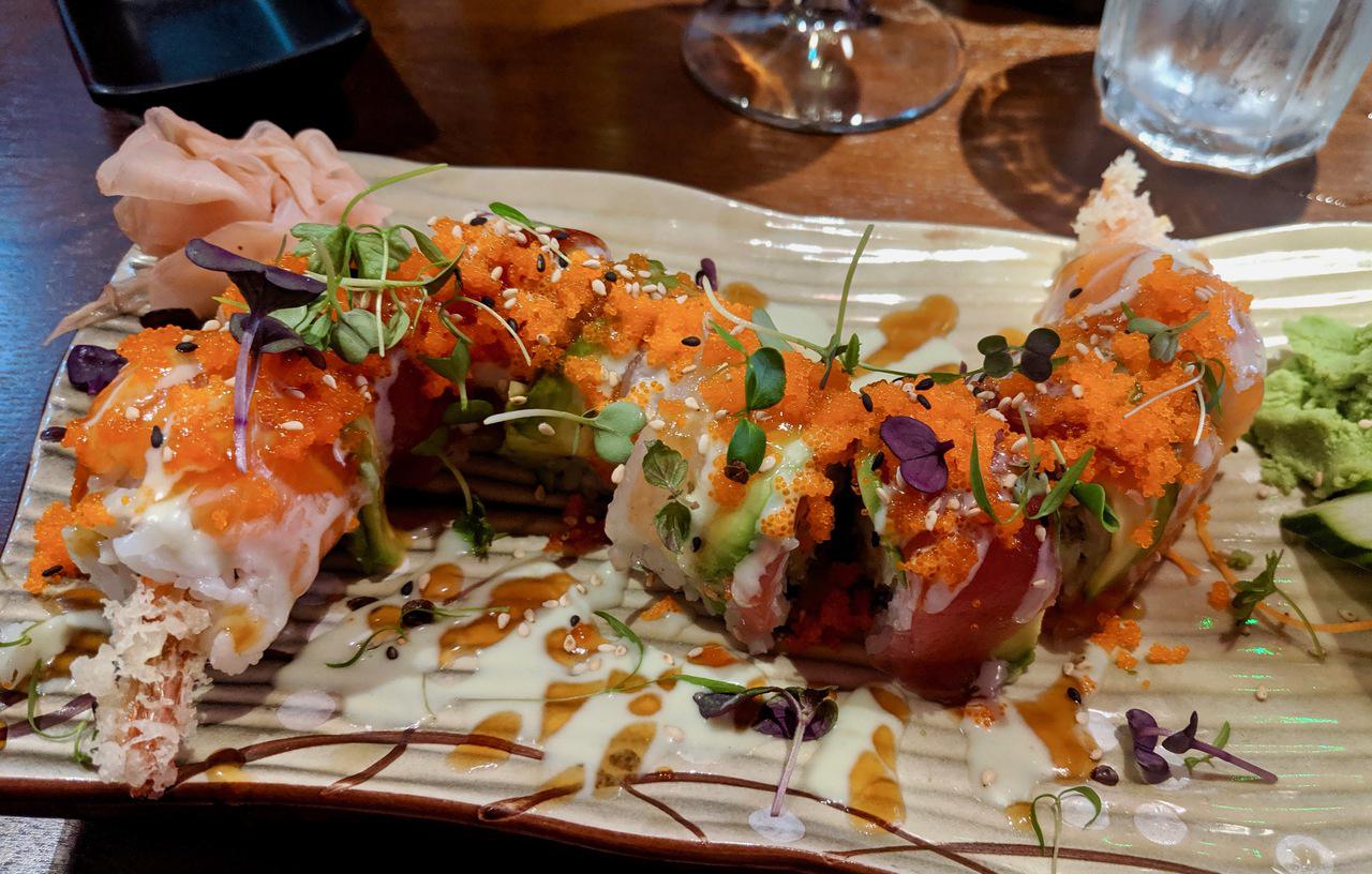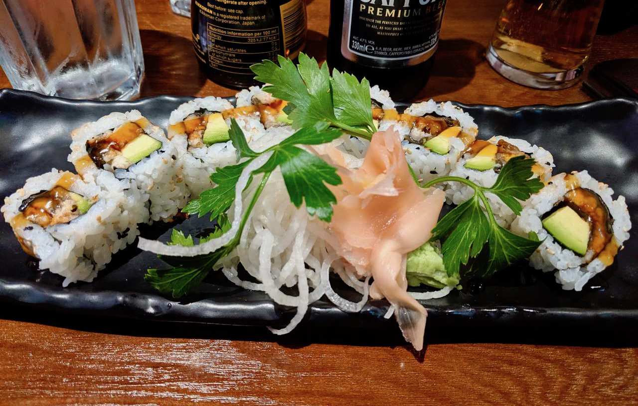 My partner opted for the more daring eel avocado sushi roll, and judging by the smile on his face, he enjoyed it. I had a taste myself and thought it was very fresh and complemented perfectly by the spicy punch of wasabi.