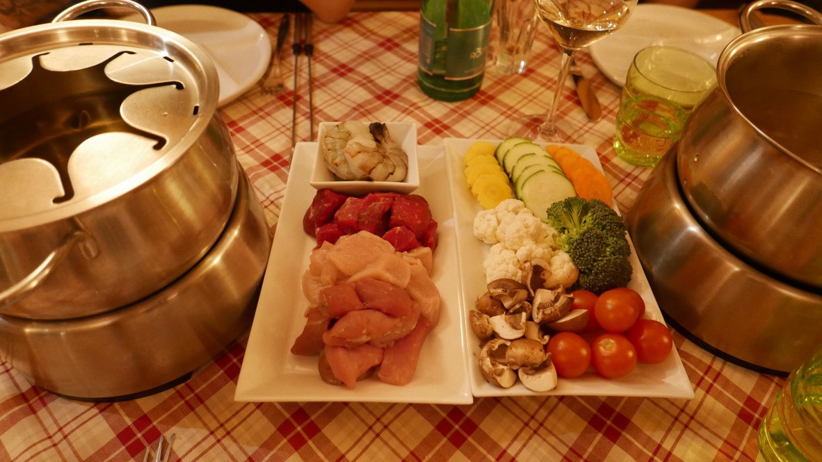 For dinner, enjoy a delicious Fondue Chinoise at Hotel Enzian, where you cook a selection of chicken, beef, pork and plump prawns in broth and oil, accompanied by vegetables, jacket potato and a vast selection of dips.