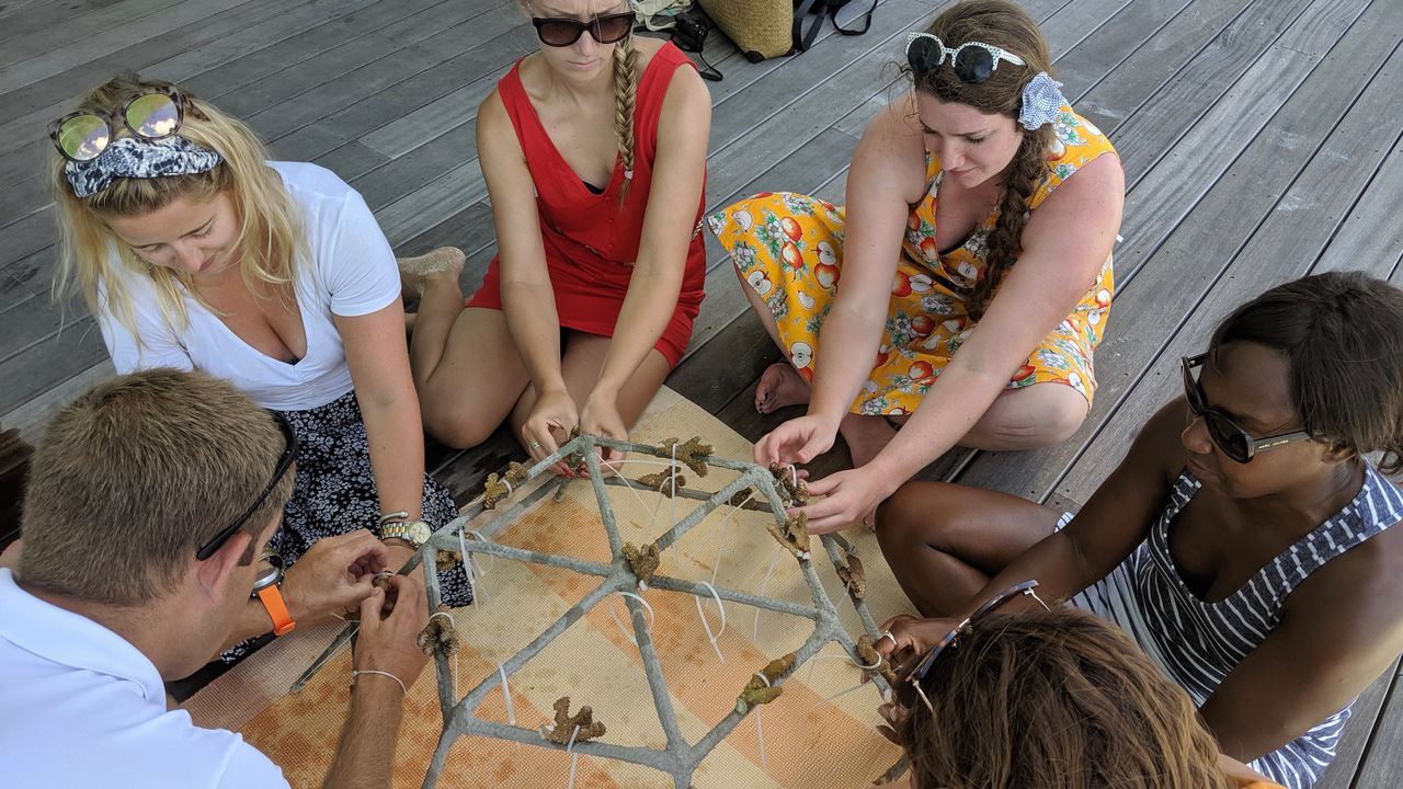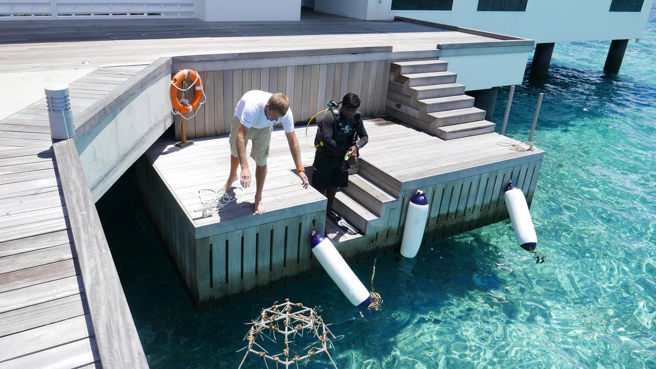 Conrad Maldives have invested in a long-term coral conservation project by placing dozens of coral frames (formed by tying pieces of live coral to a metal frame) in the ocean. Over the course of four to five years the coral will regrow, spawn and spread to other reefs, creating new ecosystems that will benefit all marine life.